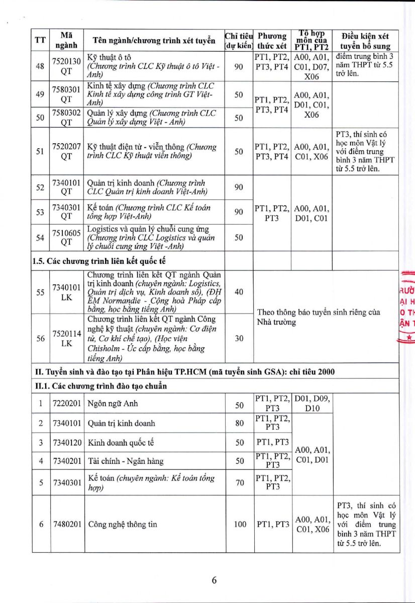 Thông tin xét tuyển