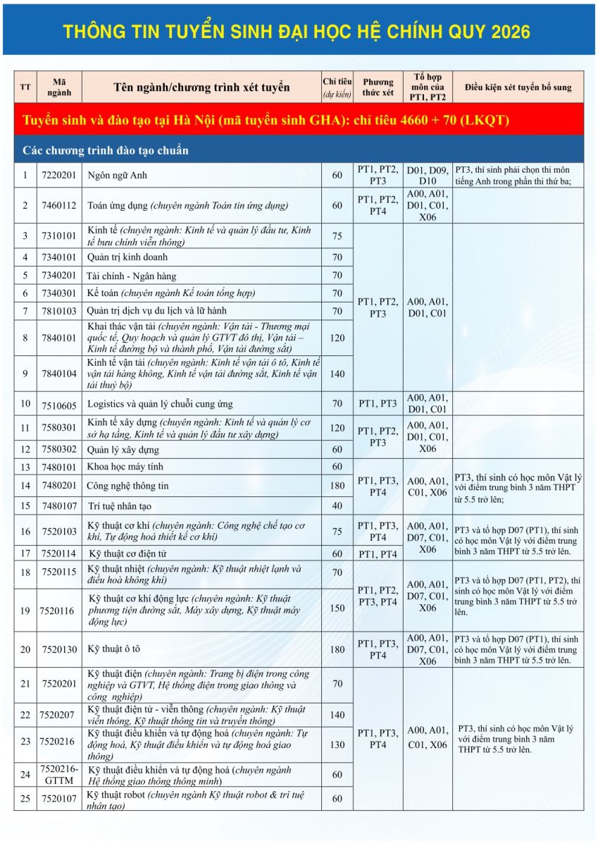 Cổng thông tin tuyển sinh Đại học chính quy ĐH Giao thông vận tải